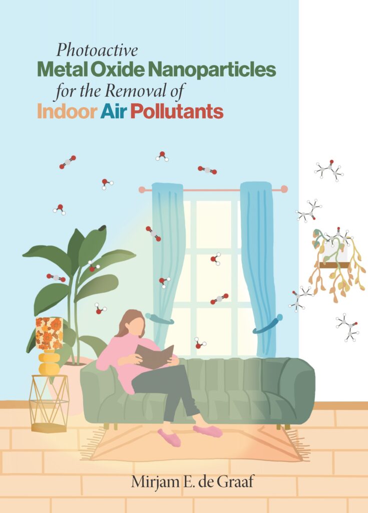 In her PhD thesis, Mirjam investigated light-activated materials (photocatalysts) that could break down harmful volatile organic compounds (VOCs) in indoor environments. With people spending up to 90% of their time indoors, creating healthy indoor environments has become essential for human health. VOCs, released during everyday activities such as cooking or from new furniture, can cause headaches, fatigue, and eye irritation.