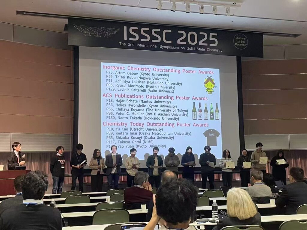 Dr. Yu Cao has been recognized with the Chemistry Today Outstanding Poster Award at the 2nd International Symposium on Solid State Chemistry for her work on converting plastic waste into valuable materials.